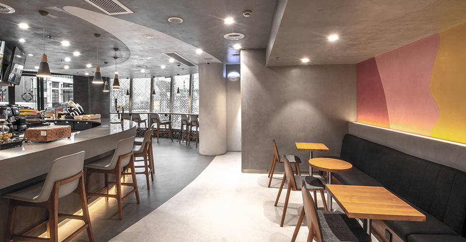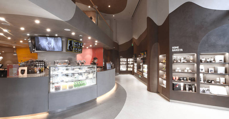 Cafe Amazon’s Hangdong Road branch in Chiang Mai blends modern minimalism with natural materials, balancing franchise standards with fresh, updated design elements.