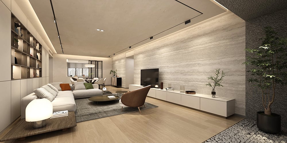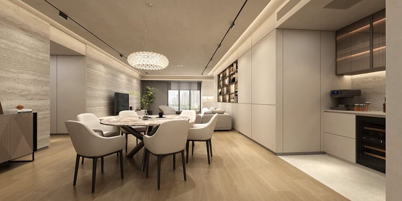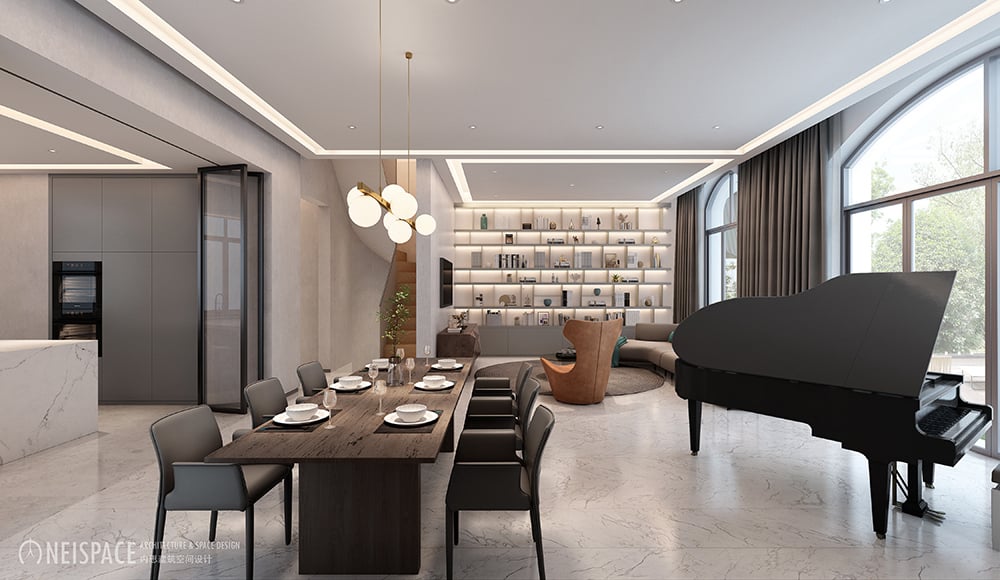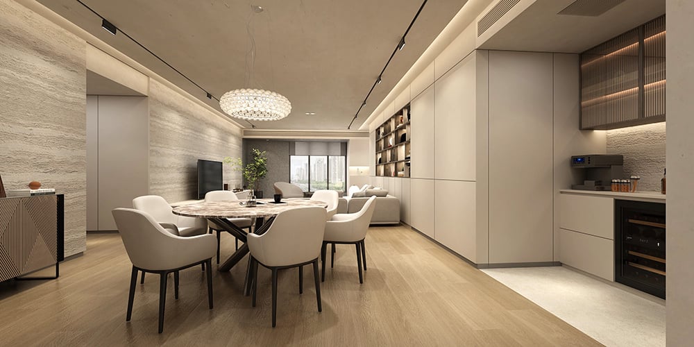 This 300㎡ apartment in Shanghai's Prince Hills combines minimalist elegance with thoughtful details, premium materials, and customized functionality for a comfortable living experience.